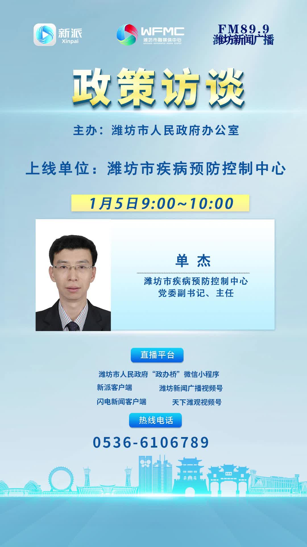 1月5日上午9:00-10:00,濰坊市疾病預(yù)防控制中心黨委副書記、主任單杰將走進(jìn)市融媒體中心新聞頻率《政策訪談》欄目直播間,敬請關(guān)注 !