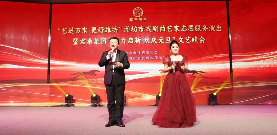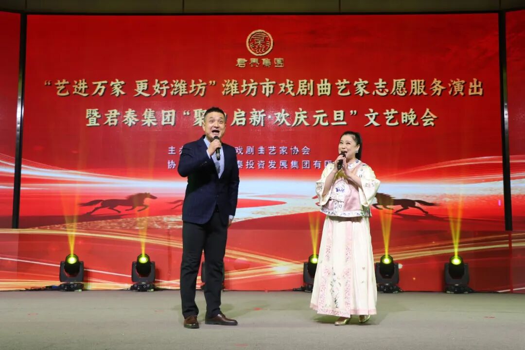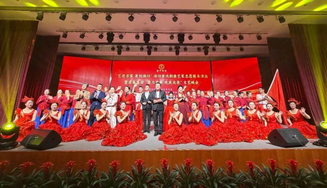 君泰集團(tuán)“聚力啟新·歡慶元旦”文藝晚會(huì)在群舞《盛世花開(kāi)》中拉開(kāi)帷幕,本次晚會(huì)不僅是濰坊市戲劇曲藝家們送藝下鄉(xiāng)、服務(wù)群眾的暖心之舉,更是芝爾莊、君泰集團(tuán)攜手轄區(qū)學(xué)校、商戶、干部員工等共話發(fā)展、共迎新年的團(tuán)圓盛會(huì)。