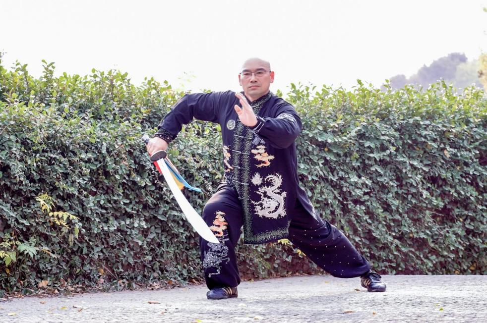孩子們剛踏入紅杉林,便看見(jiàn)村民韓華方正舞動(dòng)著太極刀鍛煉,刀光在杉影間流轉(zhuǎn),劃出靈動(dòng)的弧線,鏗鏘之聲在林間回蕩。伴隨著陣陣喝彩聲,韓師傅帶領(lǐng)著孩子們練起了楊氏太極拳,一招一式沉穩(wěn)舒展,大家在美景中沉浸式感受了中華傳統(tǒng)武術(shù)的獨(dú)特韻味。