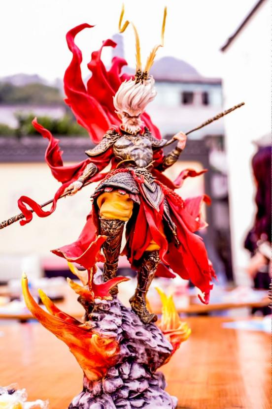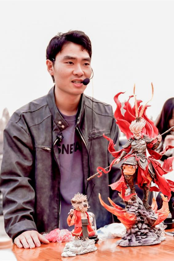 來(lái)到村委會(huì)廣場(chǎng),聞堰街道的面塑藝人向文超正展示著絕活。指尖翻飛間,《黑神話:悟空》里的齊天大圣和豬剛鬣栩栩如生。