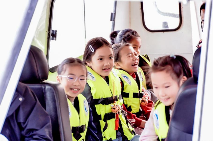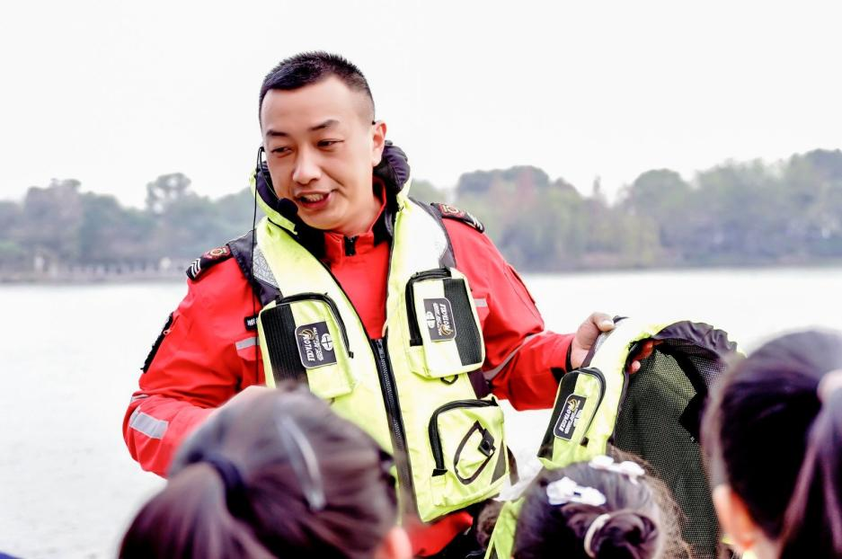 “大家一定要記住,救生衣不是裝飾品,關(guān)鍵時(shí)刻能保命!”湘湖救援大隊(duì)副大隊(duì)長(zhǎng)李波一邊細(xì)心講解,一邊手把手演示著救生衣的正確穿法。孩子們立刻穿上熒光救生衣,排著整齊的隊(duì)伍有序登上巡邏艇。巡邏艇破浪前行,涼風(fēng)撲面,大家忍不住驚呼:“原來(lái)這就是爭(zhēng)分奪秒!”“這么快的速度,救援人員就是勇士?。 ?/span>