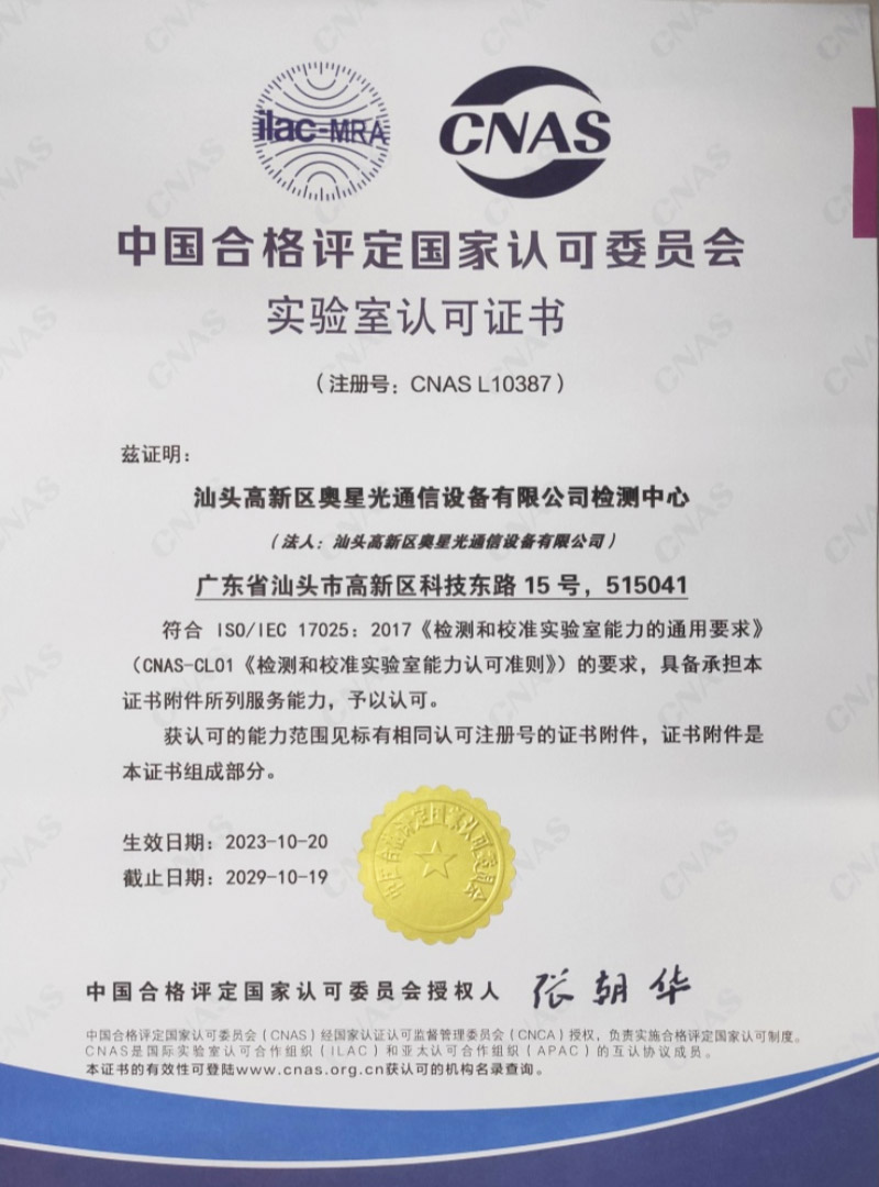 汕頭高新區(qū)奧星光通信設(shè)備有限公司檢測(cè)中心成立于2000年,設(shè)有光纖光纜產(chǎn)品及其原材料檢驗(yàn)的理化性能實(shí)驗(yàn)室、機(jī)械性能實(shí)驗(yàn)室、光學(xué)性能實(shí)驗(yàn)室和電氣性能實(shí)驗(yàn)室。